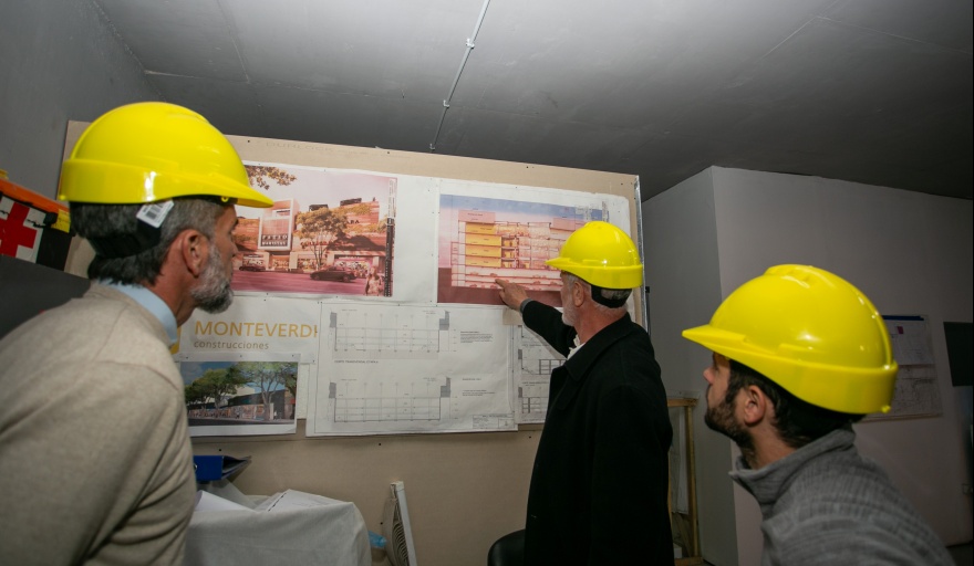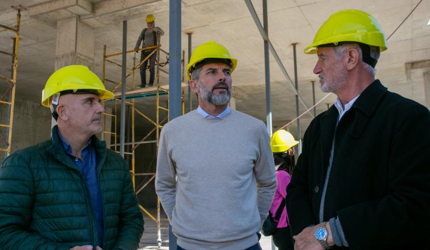 El intendente de la Ciudad de Mendoza, Ulpiano Suarez, presenció el avance de los trabajos del futuro Patio Maristas. El mandatario estuvo acompañado por el el responsable de la construcción de este predio, Adrián Monteverdi, titular de Constructora Monteverdi, y Marcelo Gatta, Gerente de Proyecto de Corrientes Palace, la empresa que es propietaria del predio y del futuro shopping.